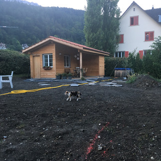 NUR WENIGE STUNDEN SPÄTER BEKAM UNSER NAGELNEUES GARTENHAUS VOM TURNVEREIN SEINEN FESTEN PLATZ. WÄHREND DES ABENDESSENS DURFTEN WIR PER LIVE-ÜBERTRAGUNG DIESES HIGHLIGHT ANSCHAUEN. UND AM NÄCHSTEN MORGEN ERFREUTEN WIR UNS ÜBER DIESEN ANBLICK: